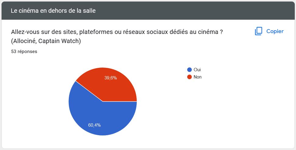 – Les questions sur les habitudes des spectateurs en dehors de la salle –> Est-ce qu’ils vont sur des sites comme Allociné ? Utilisent-ils des plateformes comme Netflix, Amazon Prime ou Disney + ?