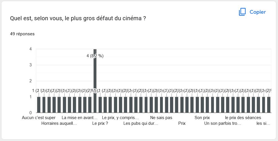 – Les questions sur la séance de cinéma –> Connaître les habitudes des usagers (est-ce qu’ils vont au cinéma seul, avec qui), mais aussi pour trouver des points de frictions