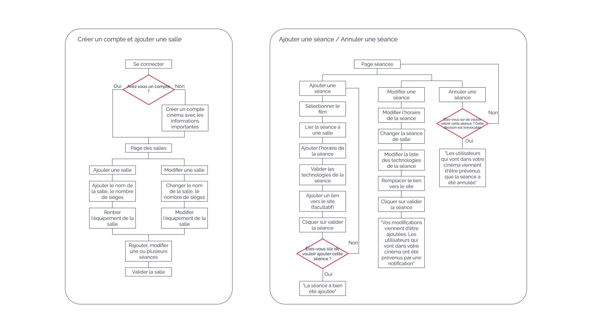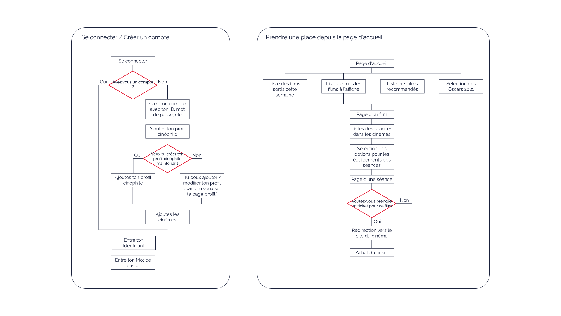Ces fonctionnalités m’ont ensuite permis de réaliser des arborescences et des user flows pour que les parcours utilisateur soient les plus cohérent possible.