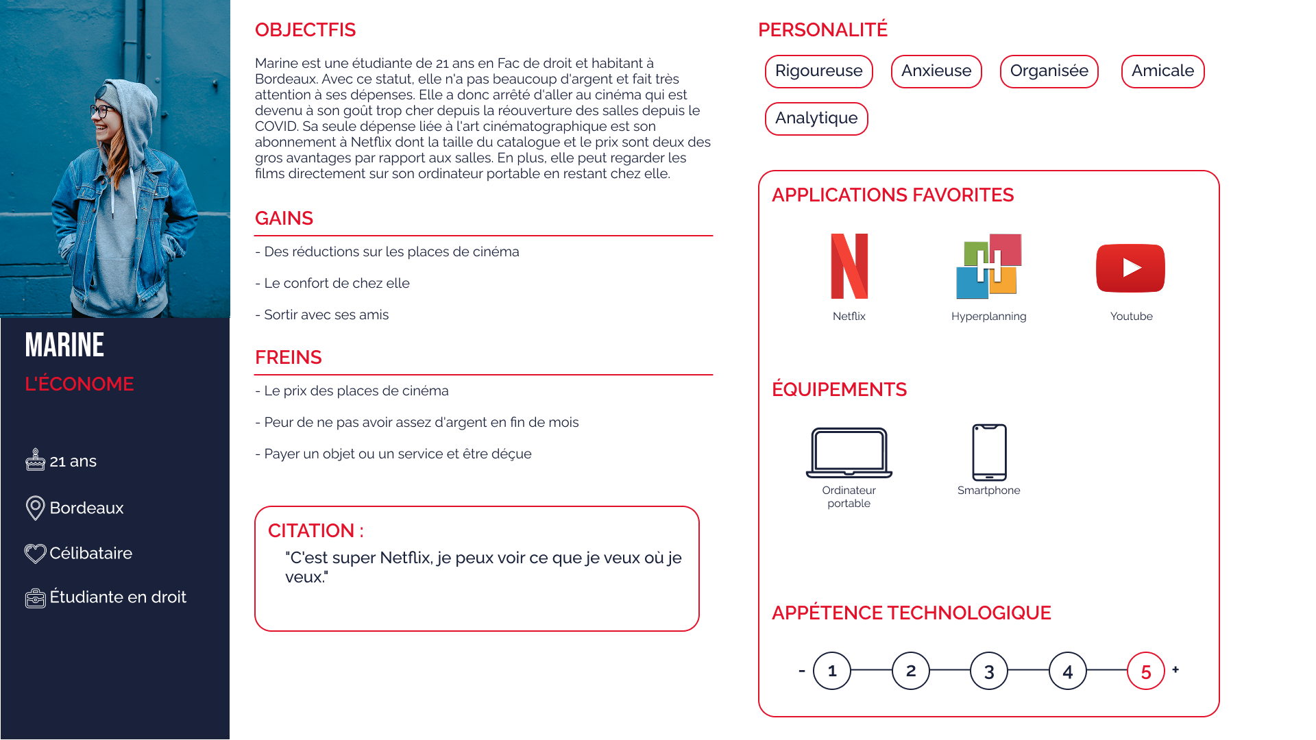 – Marine (21 ans, étudiante) sensible au prix et au confort.