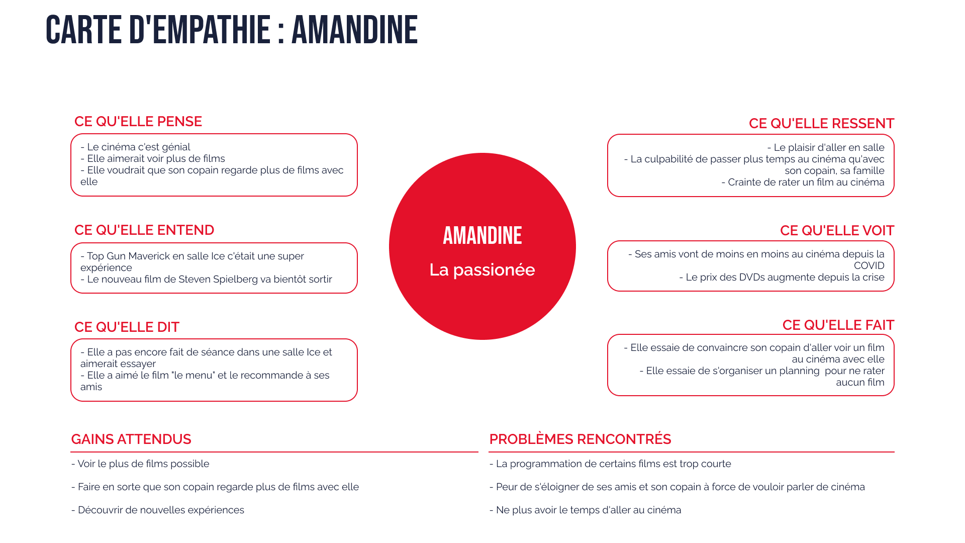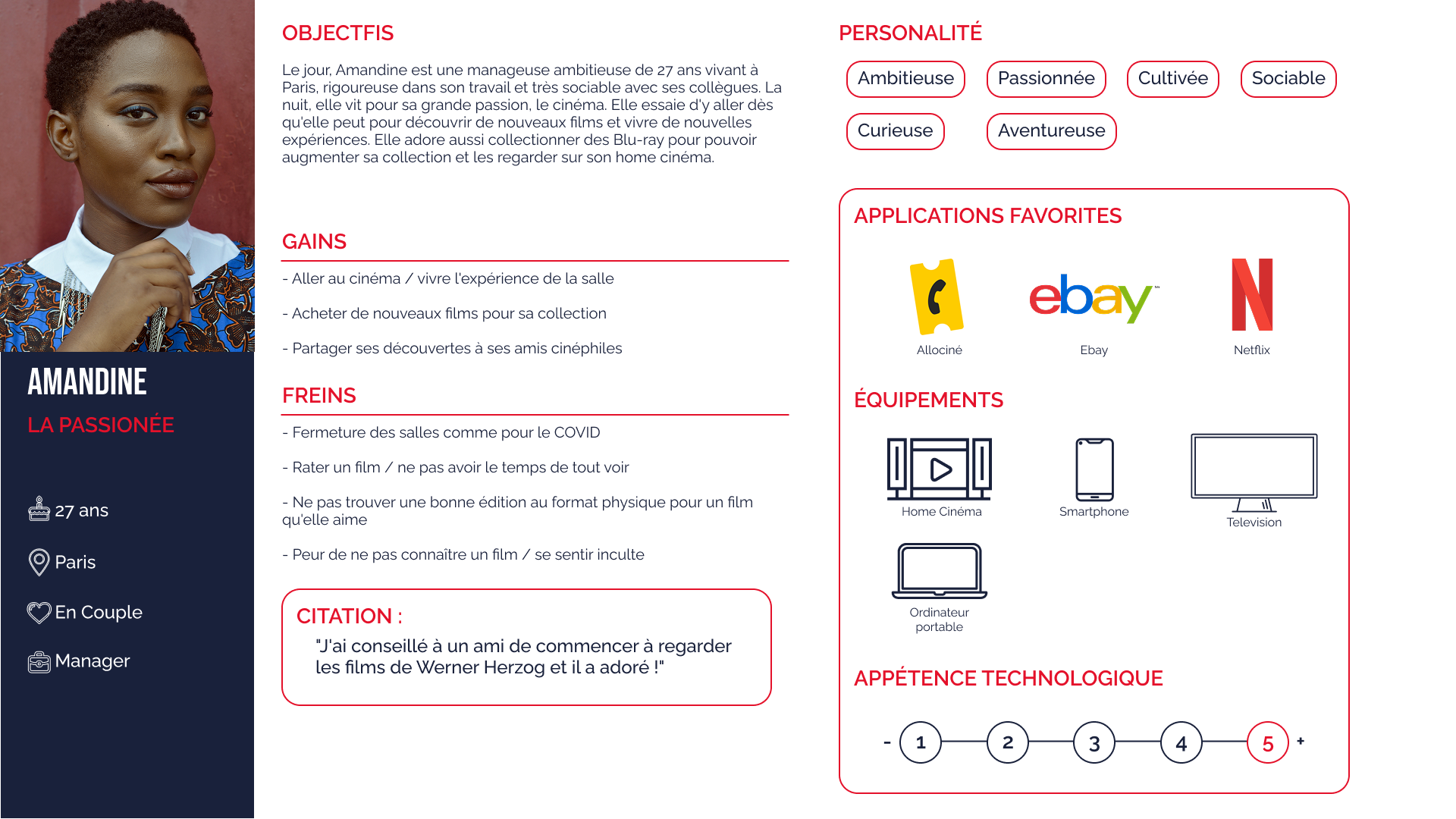 – Amandine (27 ans, passionnée) veut voir plus de films et tester de nouvelles expériences.