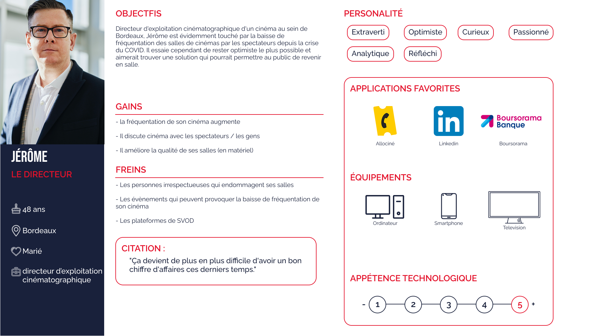 – Jérôme (48 ans, directeur) veut ramener des spectateurs dans son cinéma.
